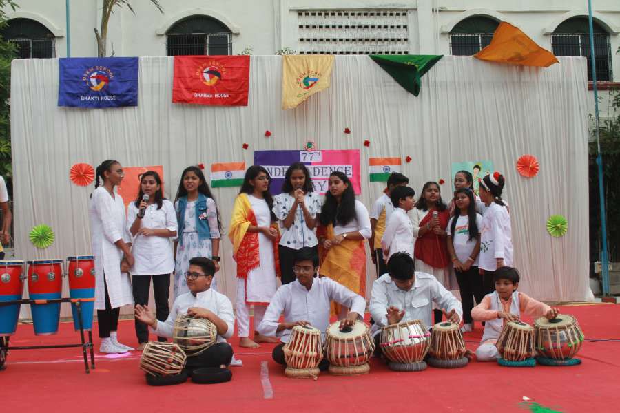 Performing Arts at OSEM Schools incorporates a variety of disciplines such as music, dance, and theatre, all of which are performed in front of an audience. Children who participate in performing arts are encouraged to express their feelings, use their imagination, and find their unique voice. The diverse ways that each of the arts—music, dance, and drama—engages a child's mind, body, and sub consciousness encourages joy in self-expression and builds their self-confidence. For children, learning music, dance, and drama has numerous advantages. It not only gives children the skills to think creatively, but it also helps them perform better academically. At OSEM, we encourage students' exploration of the dance, music, and theatre worlds by giving them a variety of avenues to showcase their skills. Students are exposed to an array of theatre, dance, and music (instrumental and vocal) aspects through our Inter-House competitions, Annual performances, and VIBES PREMIERE competitions, which helps them develop into well-rounded individuals.